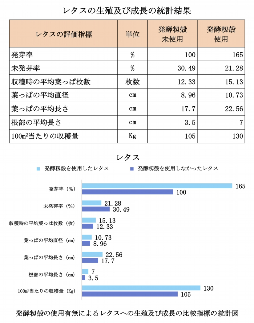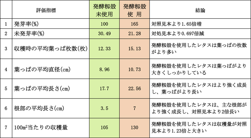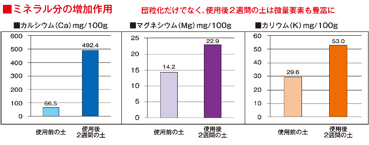 使用前と発酵もみ殻を使用して2週間経過した土壌の変化を、成分で比較したものです。