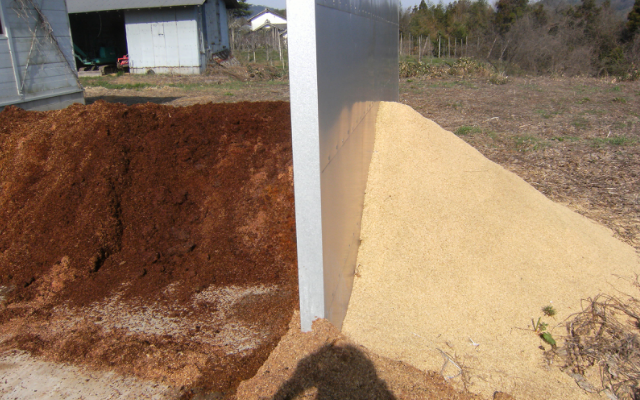 【上記同一箇所の比較画】写真左が発酵もみ殻。写真右が生のもみ殻。